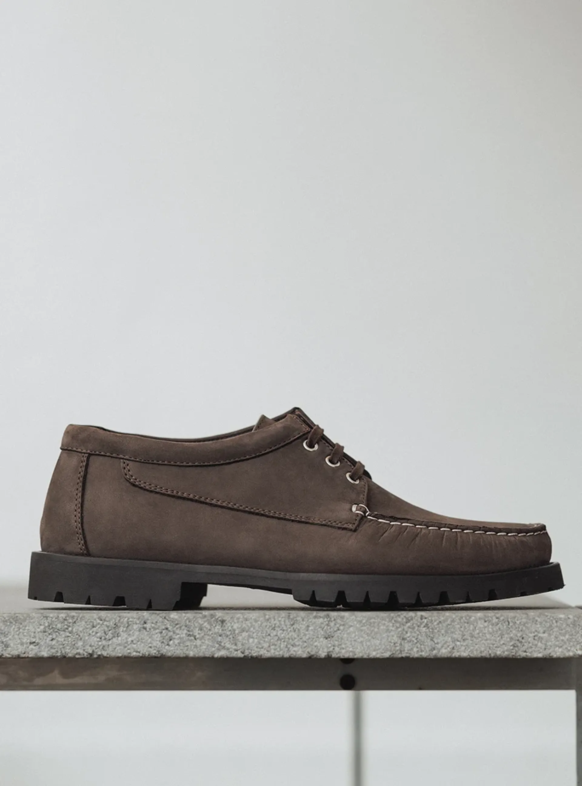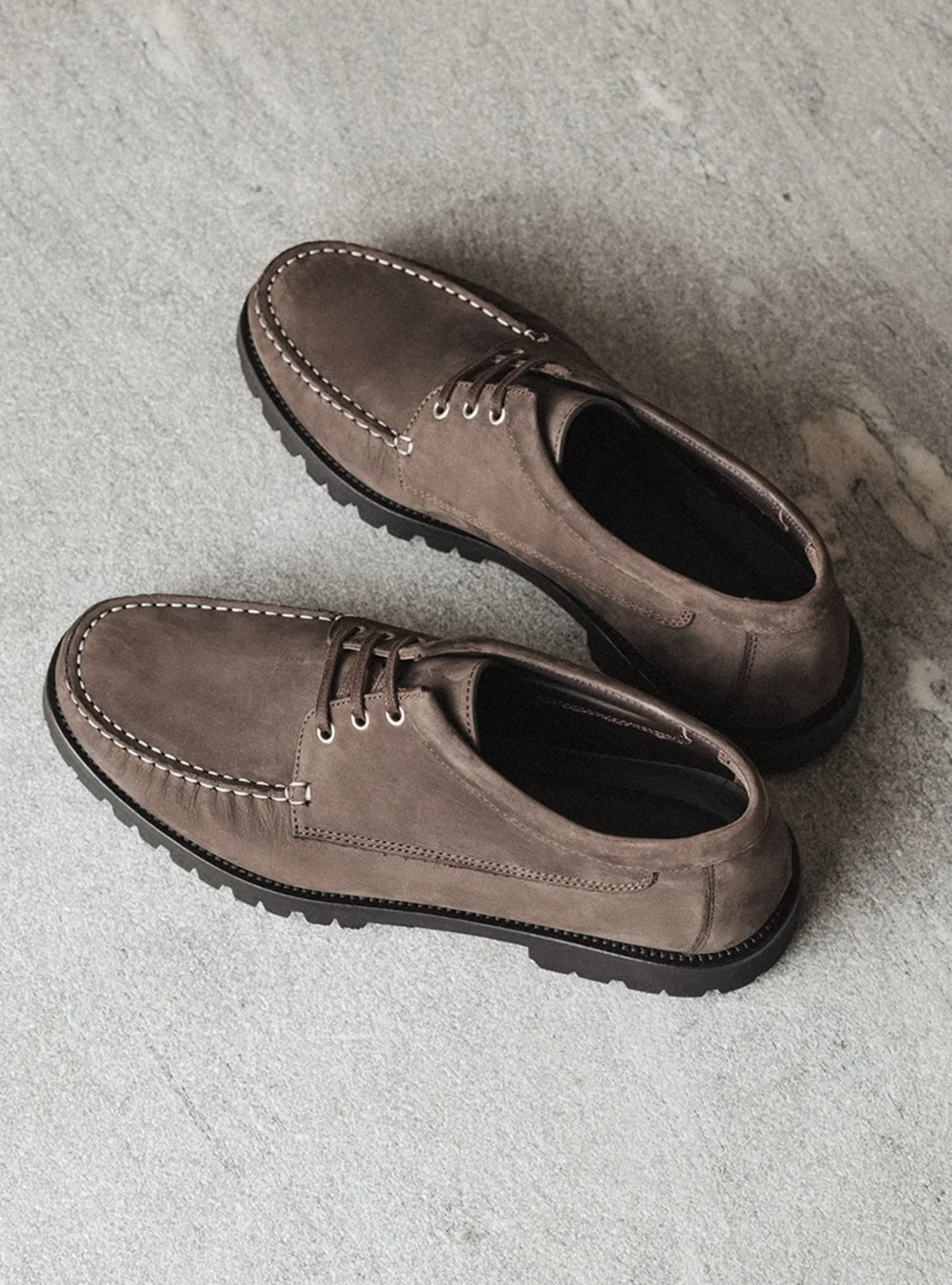 Crafted in Italy, The Camp Moc is stitched on soft deerskin or supple nubuck, and set on a robust lug sole designed for grip and durability. Conceived as a sibling to The Boat Shoe, the Camp Moc is designed for transeasonal wear – for days when conditions demand more ruggedness without compromising on comfort and style.