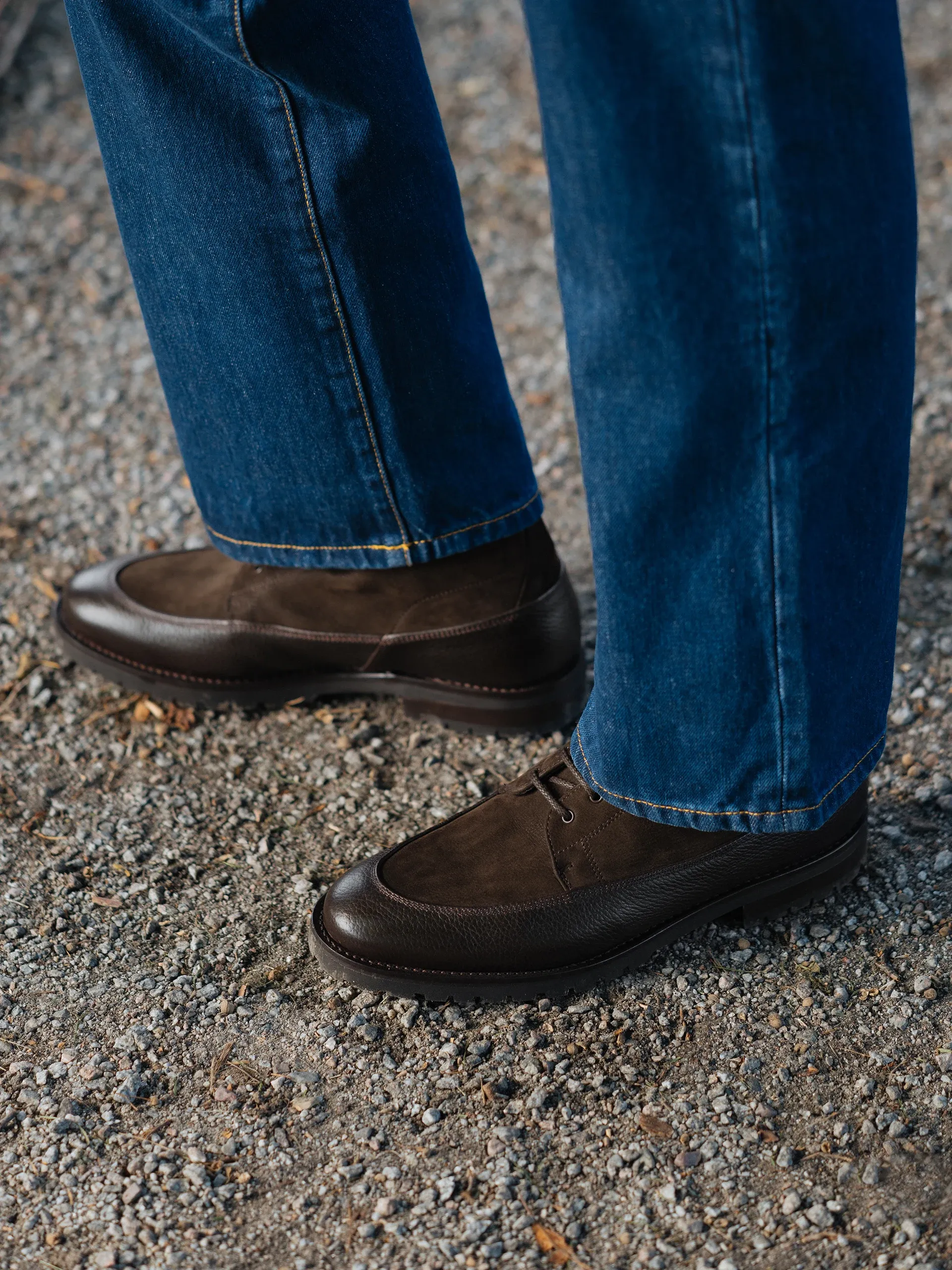 The Jumper Boot for men. A higher leg derby boot with a straight toe cap. Expertly crafted on a sturdy rubber sole with a storm welt for extra water resistance.